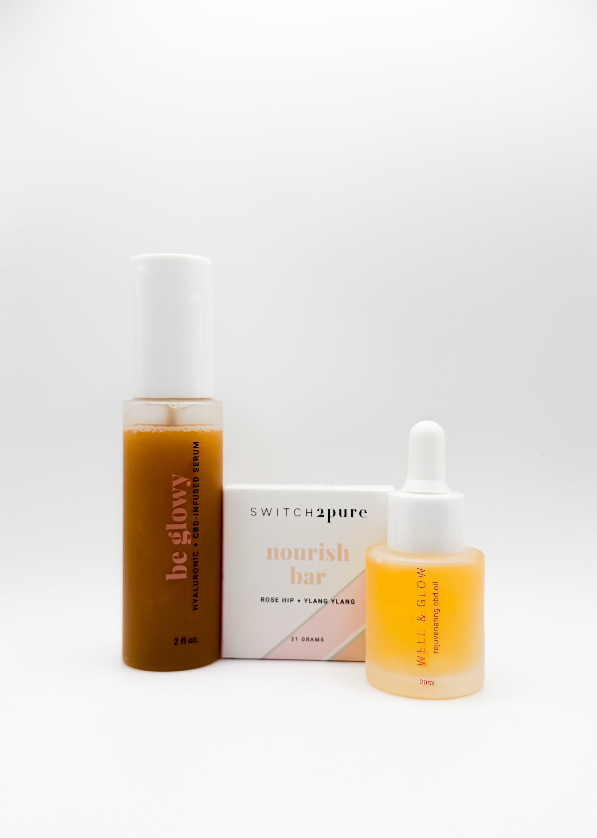 A shimmery spray serum that is loaded with hyaluronic acid, peptides, cucumber, organic tea extract, and water-soluble USA-Derived Hemp Oil. It helps moisturize dehydrated cells, calms overactive skin, and stimulates while adding radiance and glow.