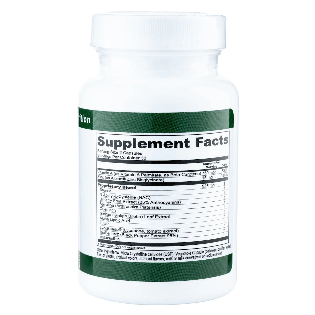 M.D. Blend’s Vision is a doctor-formulated supplement made with a powerful blend of nutrients; including Lutein, Astaxanthin, Alpha Lipoic Acid, Taurine, N-Acetylene-Cysteine (NAC), Lycopene, Bilberry, Ginkgo Biloba, Spirulina, Quercetin, Zinc, and Vitamin A, designed to support eye health and visual clarity as part of your daily wellness routine. This carefully selected combination of antioxidants and plant-based compounds helps promote healthy vision.